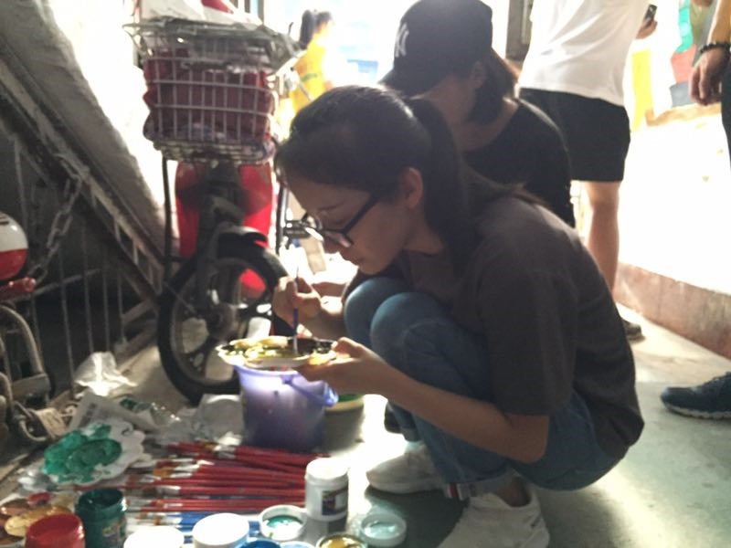 2018年7月15日到17日我院学子同艺术设计学院学子组成“旧墙美化师”团队前往大沥镇沥雄社区 进行旧墙美化。都说理论联系实际,为了更好地将理念与技术运用到实践中去。学子们筹备了预计七天的实践计划,目前已进行了三天。 借用社工准备的颜料和画笔,学子们在居民楼楼道现场装水调色与颜料稀释。由于这里的居民楼楼道狭窄,墙体也破旧不堪,所以给学子们的绘画增添了不少难度。然而这并没有让他们望而却步,一切准备就绪便开始了。炎炎夏日,在狭窄的楼道内学子们顶着满头汗水,开始对比原图,运用地上的颜料、画笔和水桶里的清水,在小画盘上进行颜料对比与调色。调色是个硬功夫,比较考验色感以及水的配合度。虽然我院学子很多并不是专业的,但凭借着对绘画的热爱,经过不断的尝试,最后也调出了想要的色调。 在绘画过程中他们一起交流绘画技巧,互相学习、互相帮忙,随着时间在慢慢往前推进,一幅幅精彩的作品呈现在大家的面前。实践活动并未结束,所以让我们继续期待学子们共同创造的美丽图画吧! ——365娱乐网