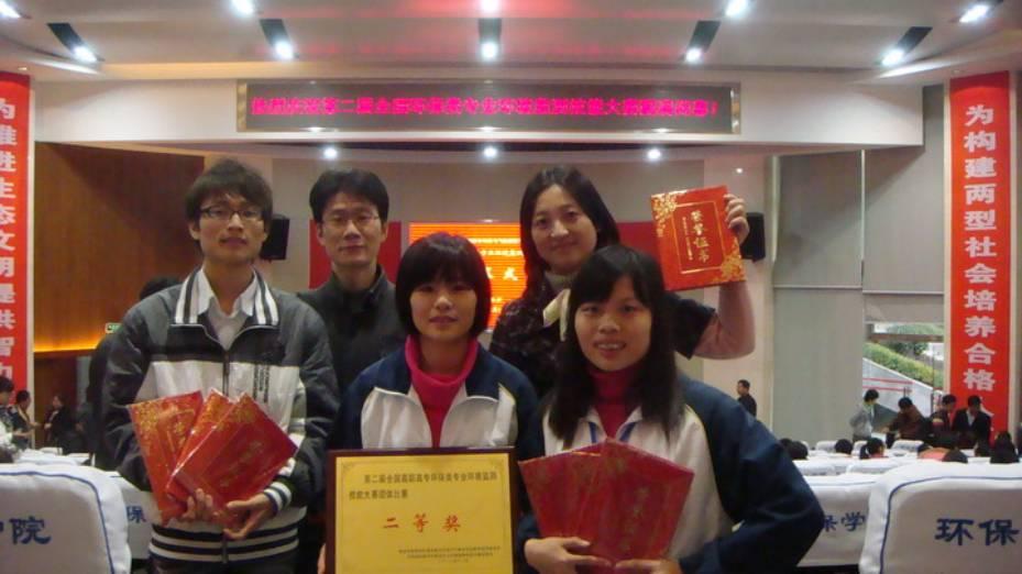 “第二届全国高职高专环保类专业环境监测技能大赛”于2010年11月12日至15日在湖南长沙举行,来自全国36所高职院校的108名学生参加了化学分析、仪器分析两个单项及集体现场采样等三个项目的竞赛。