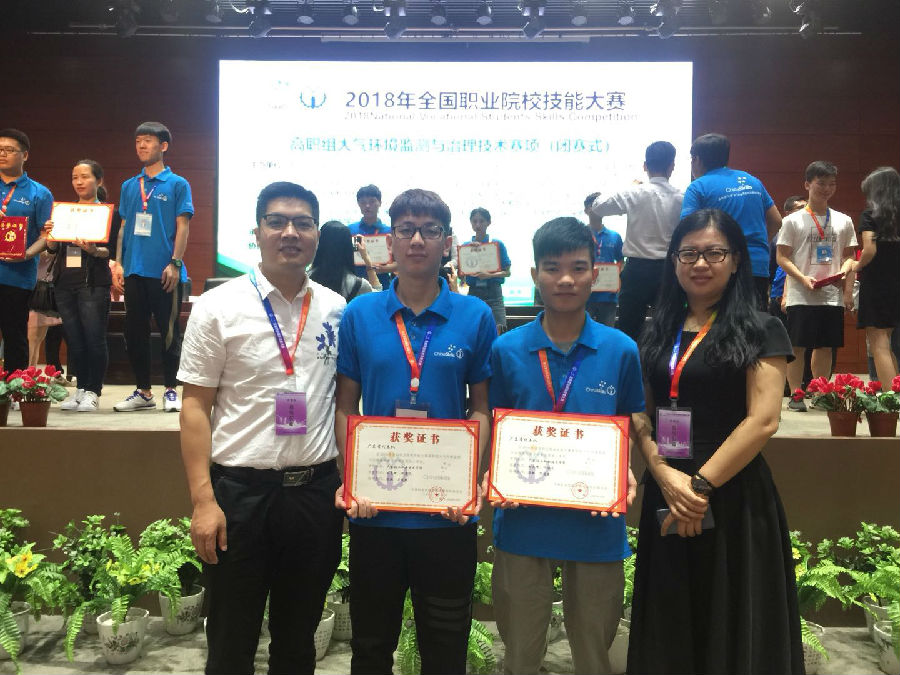 我院学子获全国职业技能大赛大气环境监测 与治理技术赛项二等奖 2018年5月中旬,全国职业院校职业技能大赛大气环境监测与治理技术赛项在天津举行。我校生态环境学院环境工程技术专业16级学生刘志烽、何满天,在万俊杰、冯新老师指导下通过广东省初赛和二次选拔赛,晋级进入此次赛项。在2天的紧张角逐中,两位同学从全国24个省57支参赛队中伍脱颖而出,荣获二等奖。 此次比赛队员全程封闭隔离,赛前经过身份信息的双重加密进入比赛区,保证了赛绩的公正性和客观性。赛项内容包括大气环境治理理论考试、仪器设备组装、设备调试运行和数据处理分析等4个竞赛模块,由队员协作完成。其中,理论考试由专业理论计算、PLC编程和CAD制图等环节组成,着重考察学生理论知识的理解能力;仪器设备组装模块根据工艺要求,自行裁管,将各个分散的零配件、阀门开关、泵和仪器设备等组装成一套整机,确保整机设备正常运行,考察学生的实操动手能力;设备调试运行模块将组装完整的设备进行通电、通风和通药运行,检查错漏,考察学生的设备运行维护能力;而数据处理分析是对正常运行设备进行数据的有效采集和计算,考察学生的理论与实际相结合能力。 365娱乐网